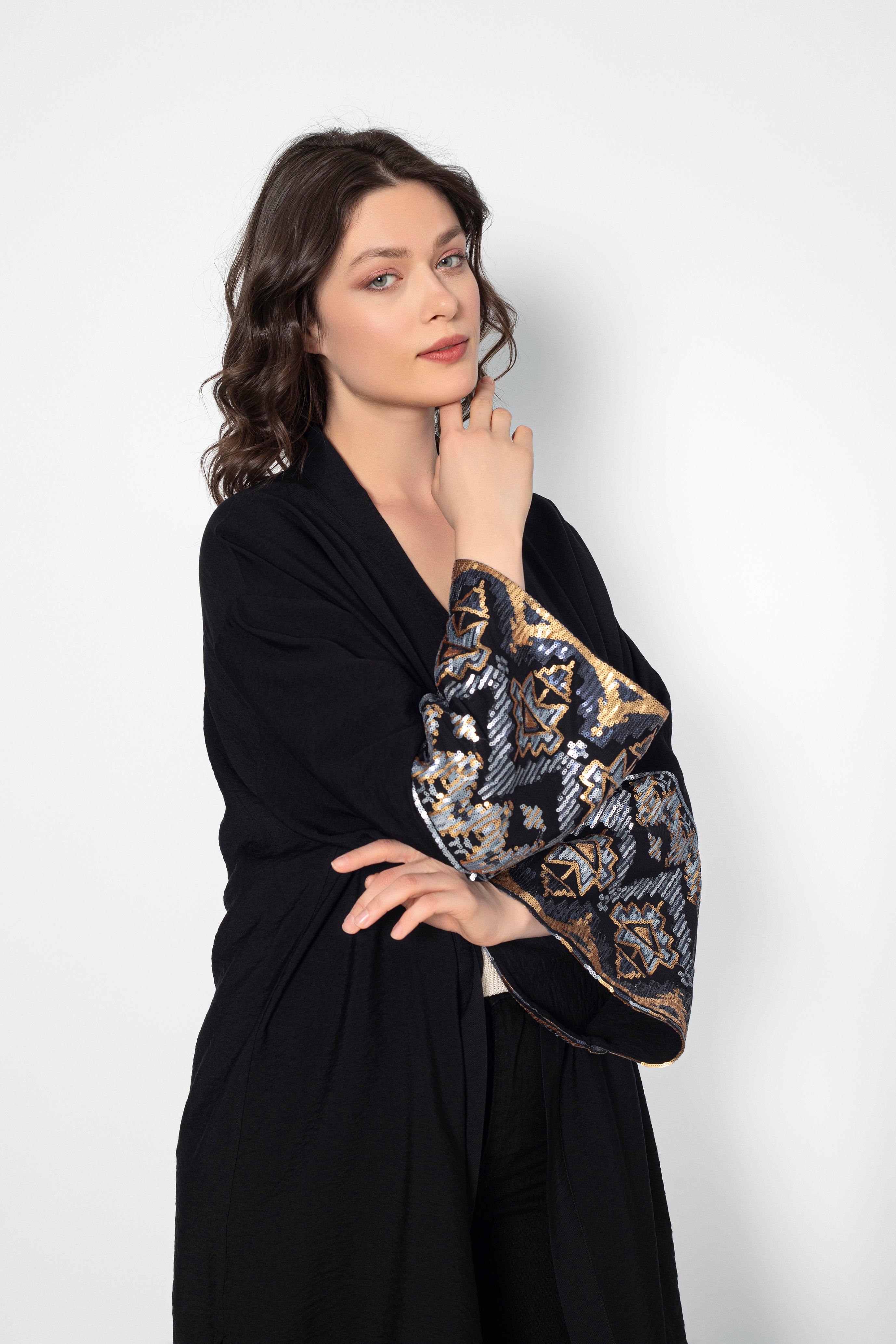 La collection Midnight, inspirée par les nuances profondes de la nuit, vous plonge dans un univers de sophistication et d'élégance. Chaque kimono, minutieusement conçu, allie confort et style. Les détails brodés et scintillants aux manches ajoutent une touche de raffinement unique.