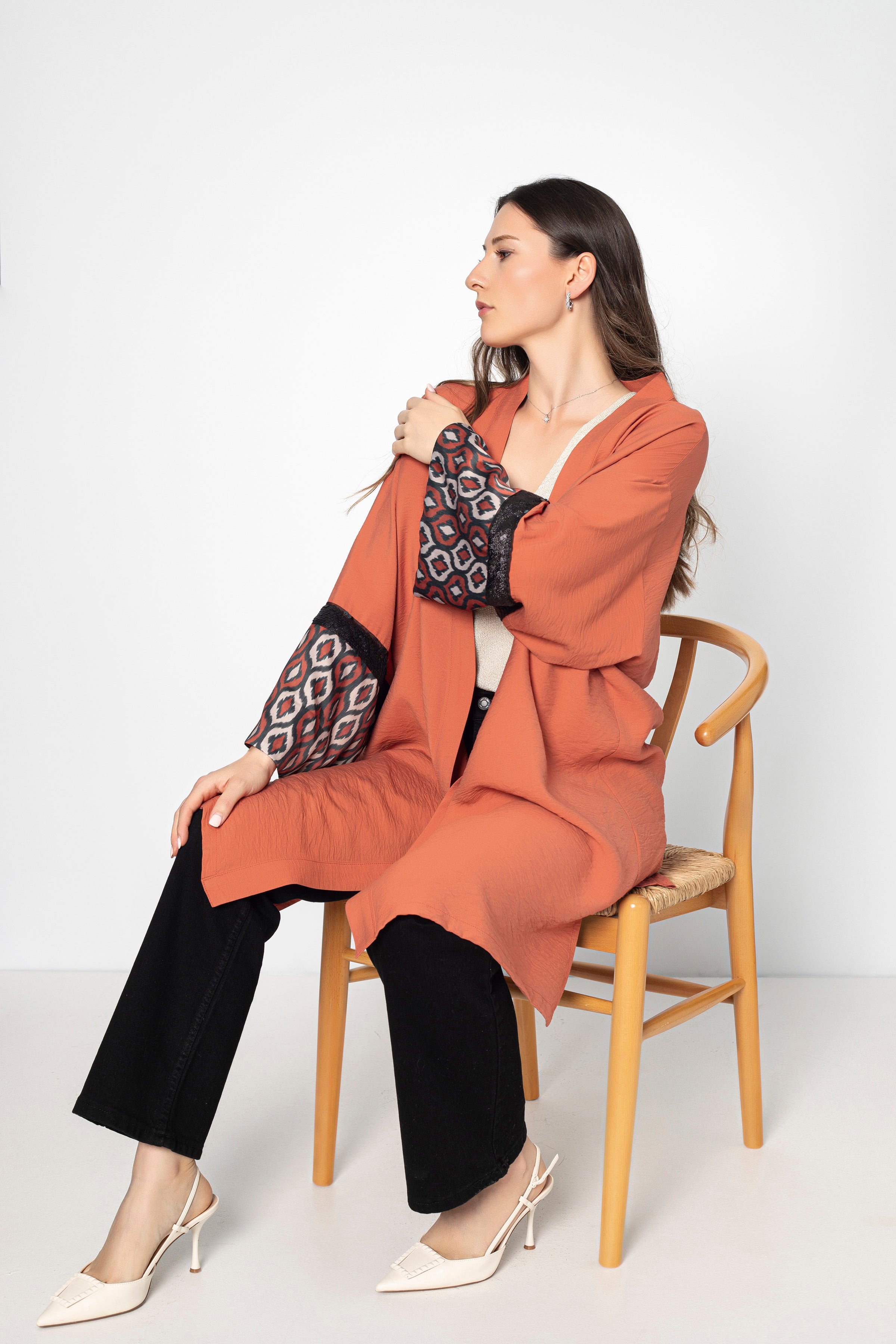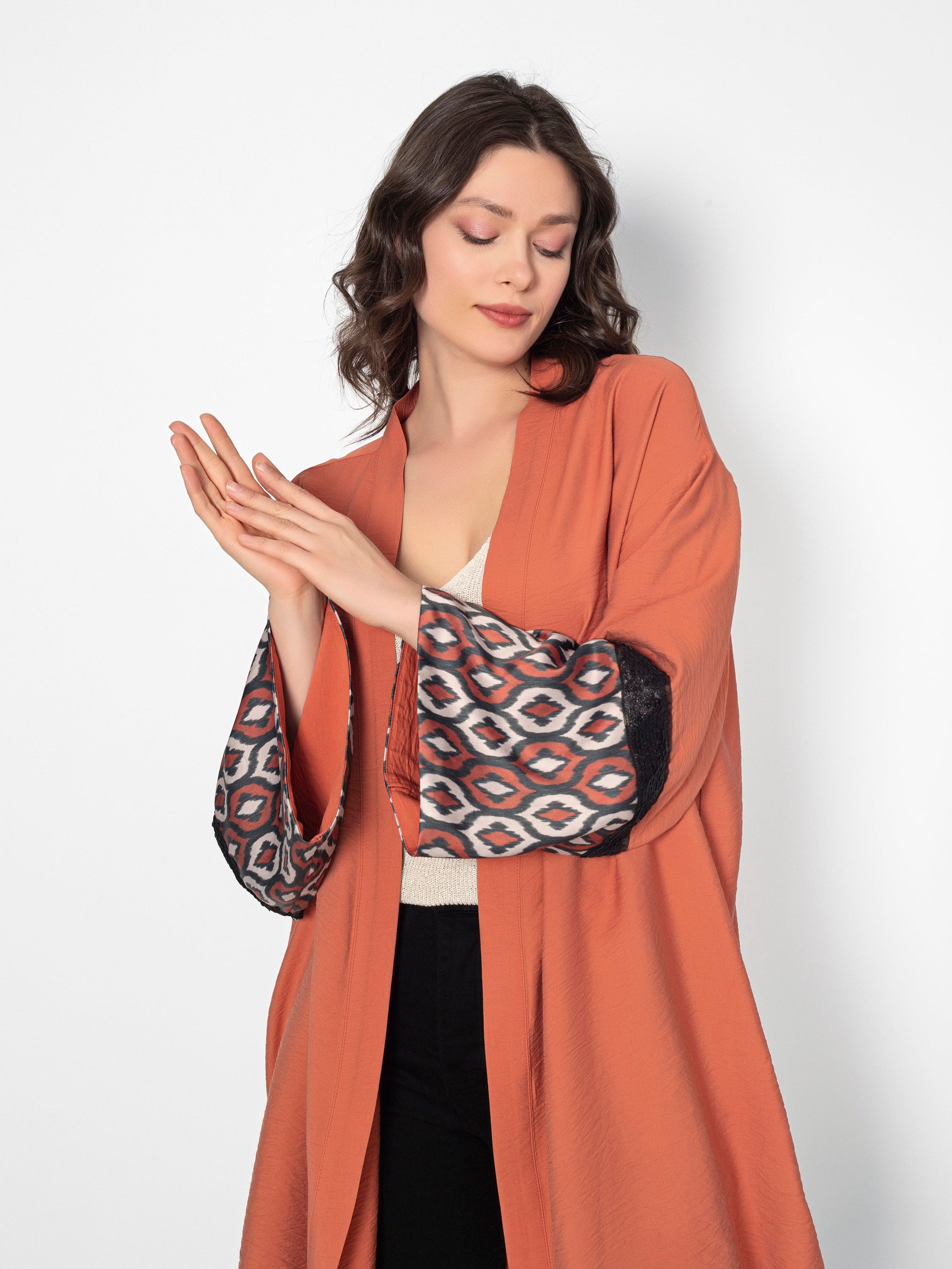 Plongez dans l'élégance intemporelle avec notre kimono Sienna, où les manches ornées d'un motif ethnique évoquent un raffinement exotique.